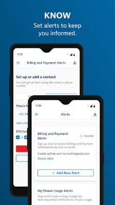 • Receive alerts when your bill is due, when there is an outage in your area, or when your usage is high