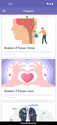 Structured psychedelic therapy modules (Heal, Grow, Love, Transcend)