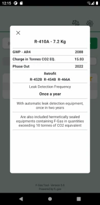 F-Gas Tool is a Global Warming Potential (GWP) Calculator for Greenhouse Gases regulated by European (EU) No. 517/2014, mainly used in air conditioning, refrigeration and fire extinguisher .
