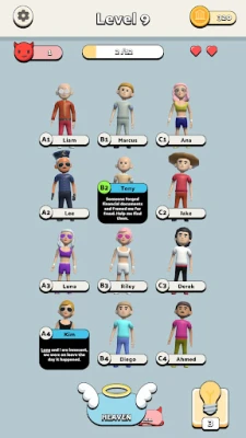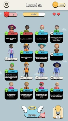 Judge 'Em All: Logic Puzzle is a thrilling brain game that puts your judgment, logic, and observation skills to the ultimate test! Step into the role of an angel sent to uncover who’s guilty and who’s innocent in each scenario. Analyze clues, listen to testimonies, and use your reasoning to solve intricate social mysteries.