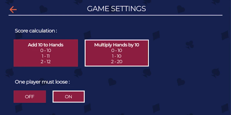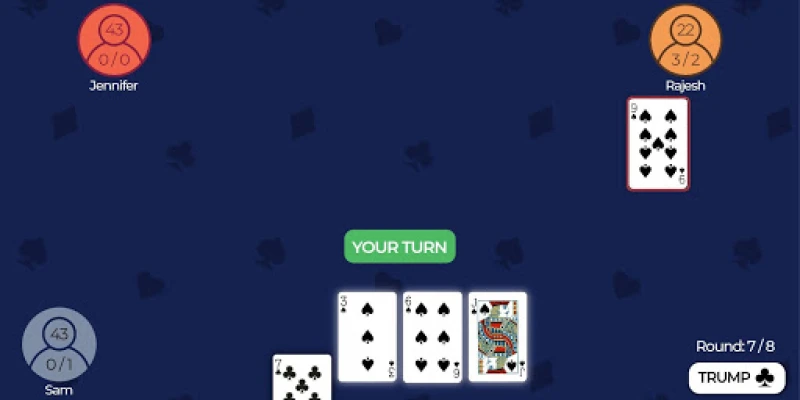 If a player estimated 3 and wins exactly 3 hands, player gets 13 or 30 points depending on settings set by Room Admin