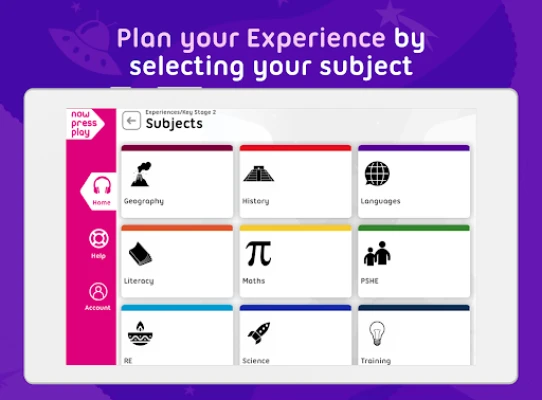 A now>press>play Experience is normally delivered by a primary school teacher to a class, as part of classroom lessons. Our library of Experiences covers a wide array of curriculum topics, teaching the central learning objectives and providing rich follow-on activities for afterwards.