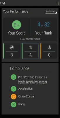 The Driver Performance Scoring App from Blue Tree Systems is the most comprehensive driver performance app in the industry, scoring drivers on the three most important aspects of a driver’s behavior that impacts any fleet: performance, compliance and safety. If a fleet operation scores high in these three categories, then their business will reap many benefits including significantly reduced fuel, insurance and maintenance costs, as well as reduced fines and violation incidences.