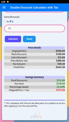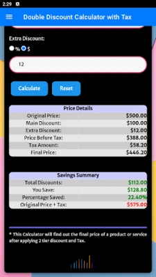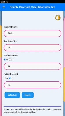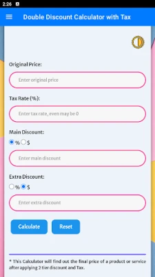 This App will find out the final price of a product or service after applying 2 tier discount and Tax. Enter the following information: