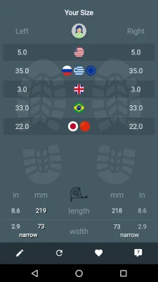 - measure your feet length in mm and inch (paid Pro, or free after watching an ad)