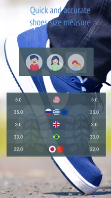 - see shoes brand specific size charts for the best fit (Pro version, some sneakers brands may be available in the free with ads version as well)