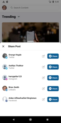 - Share engaging, relevant content from the app to all of your social communities.